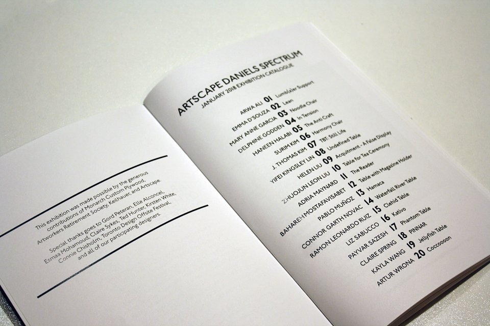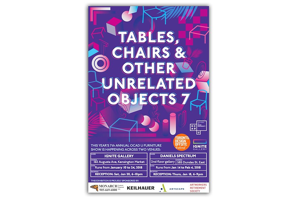 Exhibition materials and branding for seventh edition of ‘Tables, Chairs & Other Unrelated Objects’ – an annual Toronto Design Offsite Festival furniture design show.