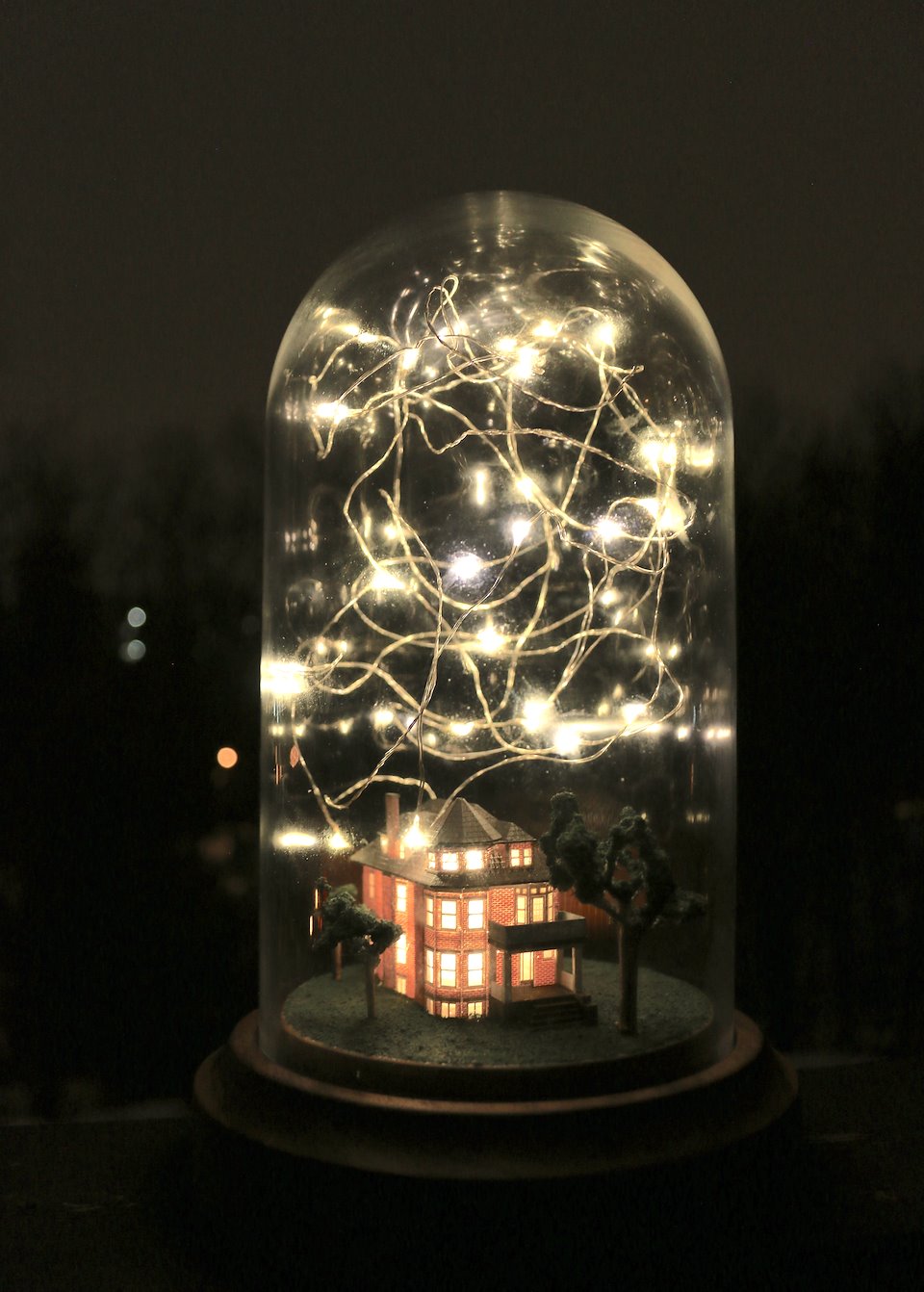 Within this lamp, a vivid miniature scene comes to life. The 1:200 scale house is modelled after the only remaining heritage house along Markham Street on a site being redeveloped into condos, evoking ideas of resilience despite one’s changing surroundings, and resistance against the powers that be. Encased within its own tiny world, appearing quaint and storybook-like in nature, “home” in a generic sense is depicted as an archetype of refuge amidst the chaos of the world outside.